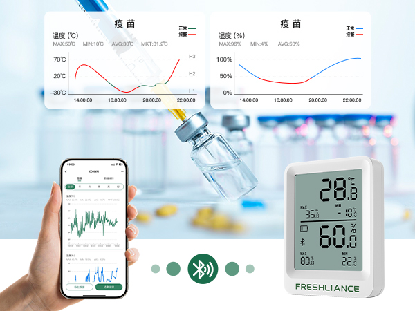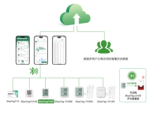 BlueTag TH20蓝牙温湿度数据记录仪非常适合监测药品、冰箱食品、仓库、实验室、博物馆、智能家居、农业、乐器维护、冷藏库等行业的温湿度。