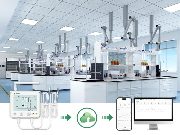 设备支持外接最多 2 路探头,可灵活扩展温度、湿度、CO₂ 等参数,并支持光照度监测,满足多参数环境监控需求。